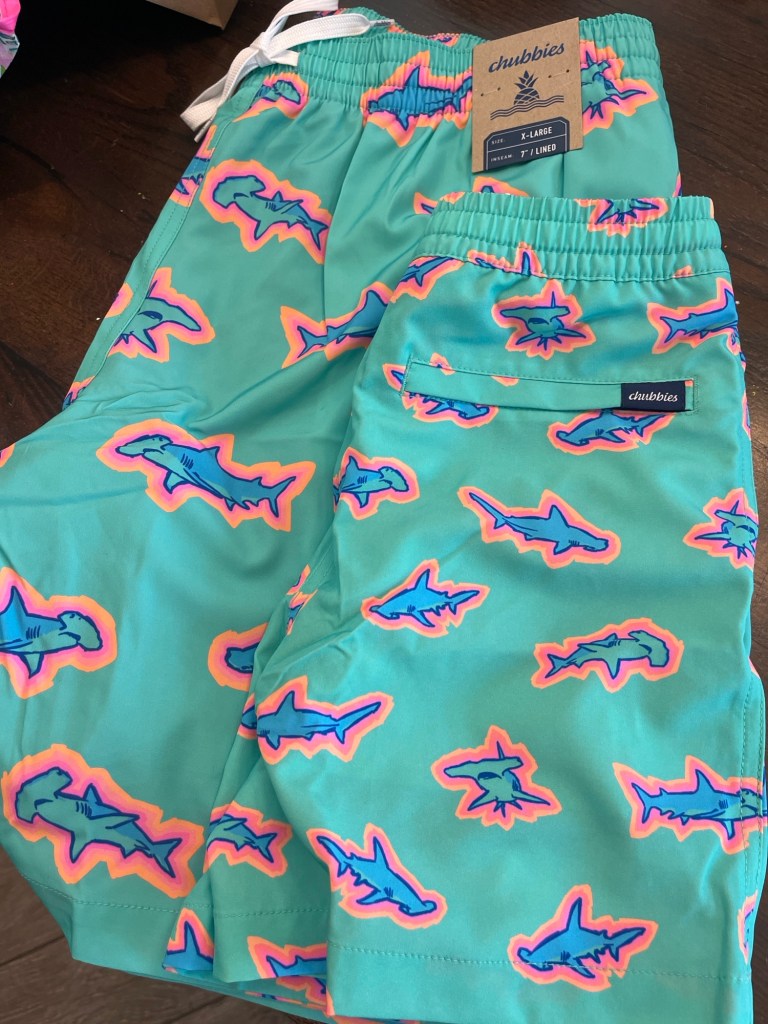 Felt good to actually walk around and try on clothes! Picked up matching Chubbies bathing suits for my hubby and 11 yr old. Hope they like sharks! lol